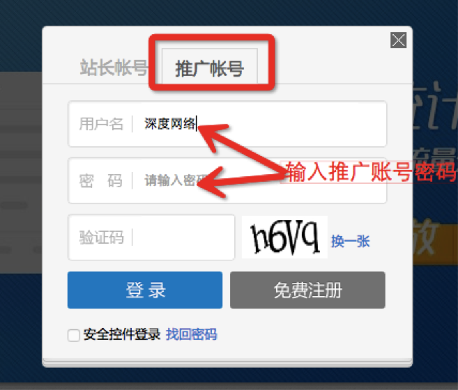在登錄百度統計時如果已開通百度競價推廣,就選擇“推廣賬號”登錄,如果沒有開通百度競價,就選擇站長賬號登錄(已注冊賬號)