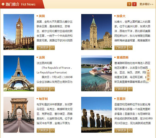 1、策劃上:結合12個國家的共同點,打破深度網建站內頁板塊模式,特制專屬的國家詳細內頁。