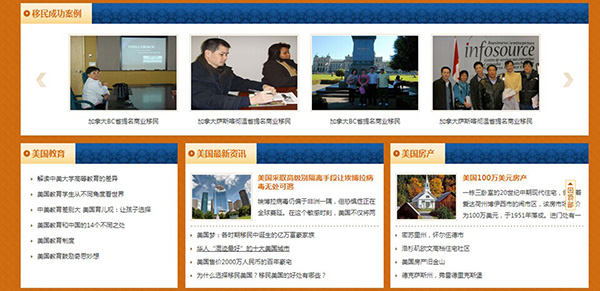 二、公信力展示模塊:互聯網時代,最難解決的就是信任問題。公信力需要通過第三方的認證來解決,這個模塊,我們通過公司與各國州長、部長的良好合作關系+成功移民的案例,進一步的加強了客戶對我們的信任。