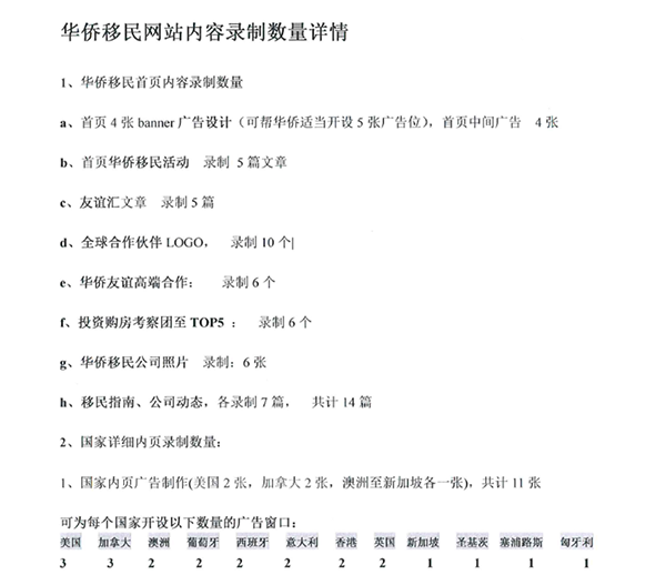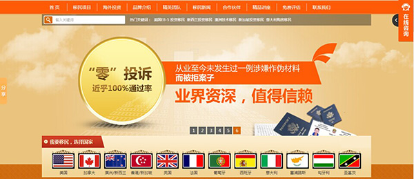 首頁策劃:主要圍繞華僑移民這個公司能為目標客戶辦理哪些國家的移民,每個國家有哪些能夠吸引目標客戶移民的優勢,辦理移民的正規性與移民通過的能力。