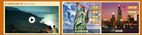 第1.2.3.4屏廣告,都是根據目前12個移民國家中客戶最關心的4個國家來做設計,加上移民國家核心優勢作為廣告詞,配上各個國家代表性的標志景色,讓終端客戶對一眼就喜歡上這個國家!