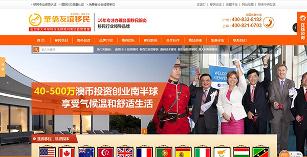 廣州華僑友誼移民營銷型網站建設項目介紹