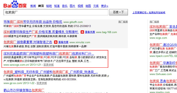 當(dāng)前位置:首頁 » 運(yùn)營案例 » 欣昌盛網(wǎng)站運(yùn)營—【包裝袋廠】關(guān)鍵詞百度效果展示