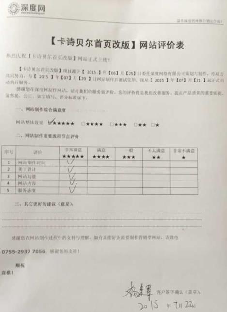 東莞卡詩貝營銷型網站上線確認表