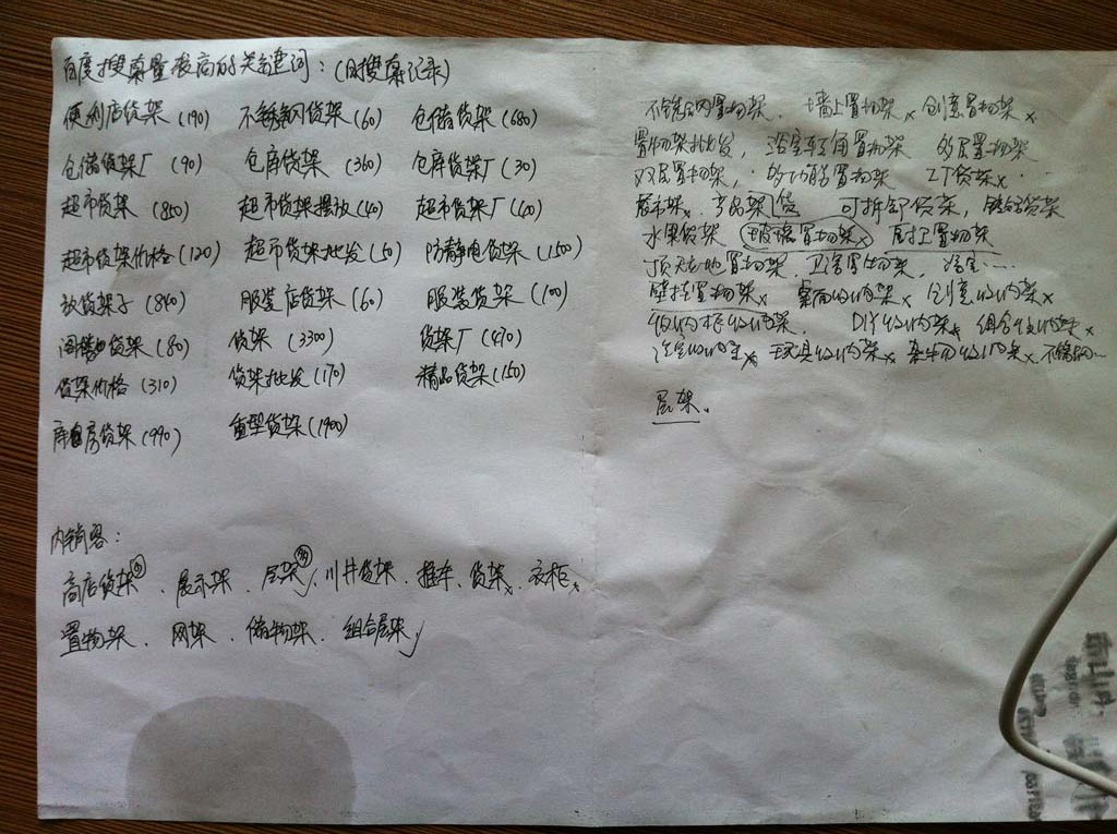 "貨架"在12年10月簽訂合作協議時,由客戶方提供的核心推廣關鍵詞,但是經過深度網運營部的不懈努力,把"貨架"推廣至百度首頁優化排名第四位;在此次的工作匯報中客戶向我們反映網站詢盤的客戶主要是要采購應用在倉庫的"鐵板大貨架",而角鐵貨架不是川井企業所生產的產品(川井主要生產小型DIY置物架).這樣就導致大量的訪客詢盤是沒法成交的;經過與客戶的協商最后雙方一致決定放棄"貨架"關鍵詞的推廣,轉而推廣"層架"(層架的客戶成家率最高);