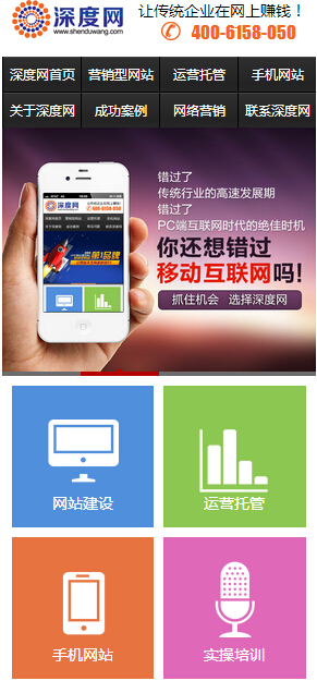 手機網站的優化和PC網站略有不同,由于搜索引擎針對手機網站的優化所出具的優化規則和PC網站存在差異,我們在實際的網站優化時,一定要注意區分兩者的不同。對于手機網站,只有做到精準優化,有的放矢,才能夠獲得好的排名。很多企業的推廣人員在這方便就吃了大虧,認為手機網站的優化方法和PC網站是一樣的,沒有做到針對性的優化,或者就按照PC網站的方法去優化,結果很長時間也看不出一點效果,還在疑惑,我也做了優化,為什么競爭對手就比我的排名好。那么,如何對手機網站進行優化,營銷型手機網站如何做好優化?看看深度網網站運營專家的一些經驗介紹吧。